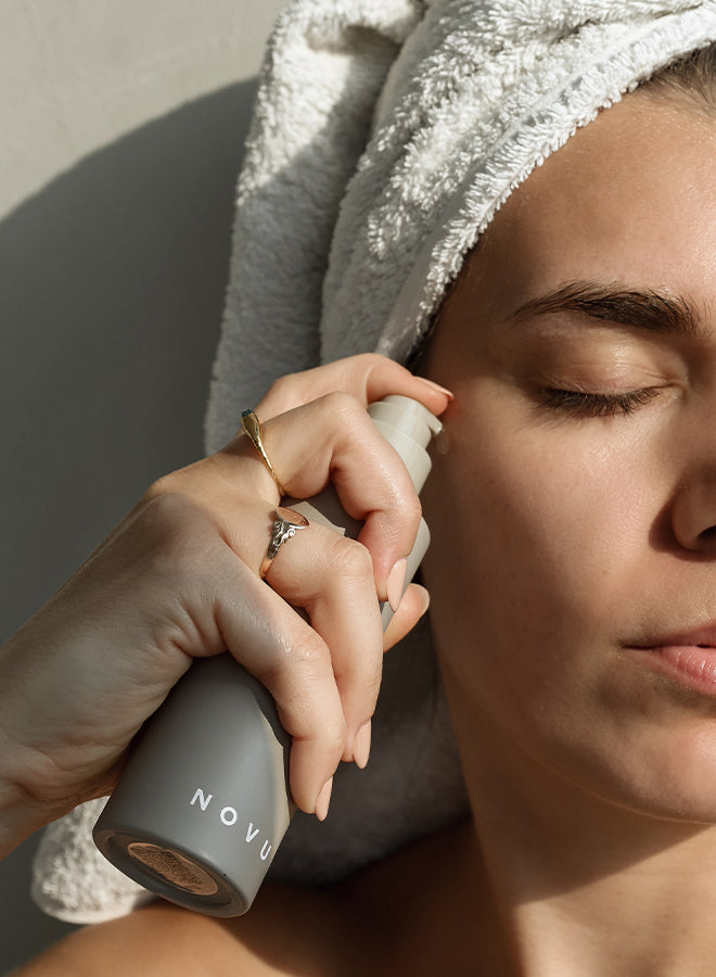 after cleansing face and/or exfoliating, moisten a cotton pad with restoring toner and gently apply over the face in upward movements. allow to dry, and follow with NOVU Glow Serum. avoid contact with eyes.