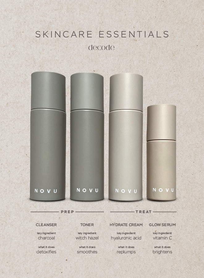 04 hydrate cream: after NOVU glow serum has soaked in, massage a pearl size amount in an upward motion onto facial and neck region. use in the morning and night for a healthy complexion.